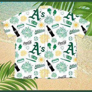 Oakland A's Button Up Aloha Coca Cola Short Sleeve Top