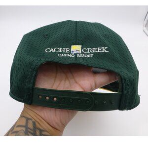 Pre-owned and still in good condition. Adjustable Snap Back Closure. "Batting Practice" A's Elephant logo at front. Sponsored by Cache Creek Casino logo at back.