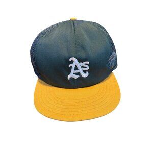Oakland Athletics Baseball Trucker Hat Green & Yellow Large Mesh Snapback Cap
