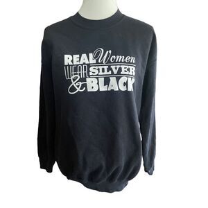 The absolute Best Custom Made Oakland Raiders Sweatshirt! This has a Crewneck,Long Sleeves, and in the front it says “Real Women Wear Silver & Black” and on the back it says, “The Original Dark Raider” 1976-1996 Defense Raider with Darth Vader on it