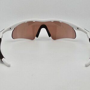 This listing is for authentic Oakley 09-200 New M Frame Polished White Frame Vented Golf G30 Iridium Hybrid S Lens Sunglasses w/ Case RARE. Original lens was Hybrid S jade Iridium and have been upgraded to Vented Golf G30 Iridium Hybris S Lens and Rootbeer Temple Socks. Sunglasses in very good pre-owned condition, (see photos). Listed price is reflective of item condition. Size: OS. Made in USA. Oakley black micro fiber cinch case included in listing. Please see pictures to make your complete condition assessment.