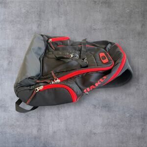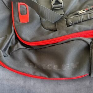* Red contrasting zippers, zipper pulls and the Oakley® logo provide eye-catching contrast against the black body of the bag.