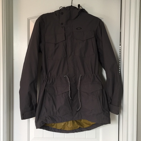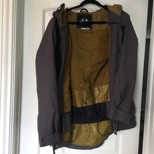 For Rain: 10k waterproof with Oakley’s signature Biozone waterproofing. Adjustable hood. POCKETS! Pockets for everything. Adjustable cuffs so you can layer if you want. Long tail hem in back to keep you extra dry.
