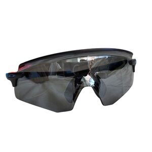 Sleek Oakley sunglasses. Black frame with gray lenses. Modern design.