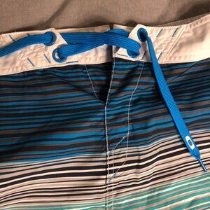 Oakley Board Shorts Men's Size 36 Blue Striped Swim Trunks Swimwear Surf Logo