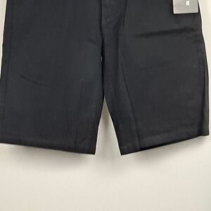 Black, size 33. Classic 5pocket style with zip fly front and button. Measures 33" waist, inseam is 11" . Soft comfortable fabric is 98% cotton, 2% elastane
