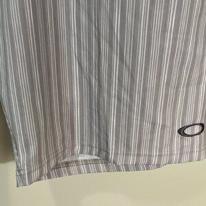 Oakley Golf Men's white, tan and black striped flat front shorts 38 11" inseam