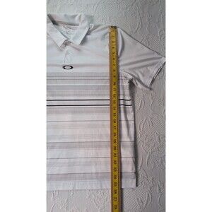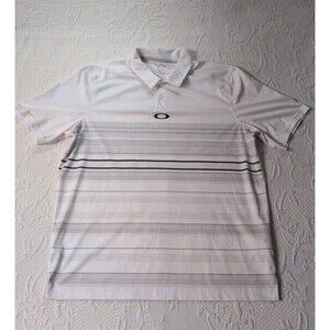 Oakley High Crest Polo Mens M White Striped Golf Casual Regular Collared Shirt