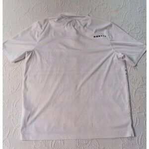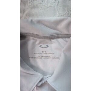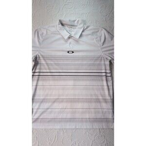 Oakley High Crest Polo Mens M White Striped Golf Casual Regular Collared Shirt. Excellent condition. Ready for your next game of golf.