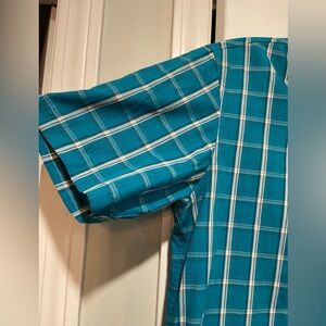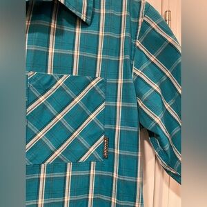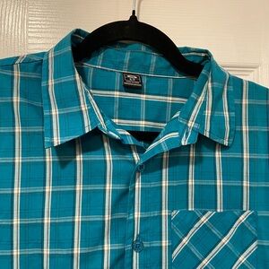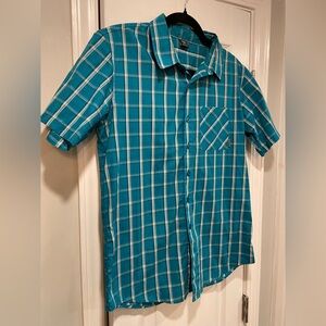 Oakley Men’s Blue Plaid Short Sleeve Button Down Collared Shirt Logo Size S