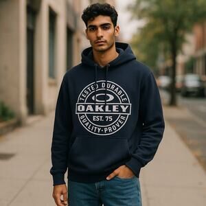 Oakley Mens Hoodie Size Small Navy Blue Drawstring Tested Durable Quality Proven