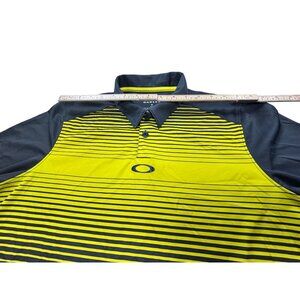 Oakley Mens Hydrolix Polo Shirt S Yellow & Navy Striped Regular Fit Short Sleeve