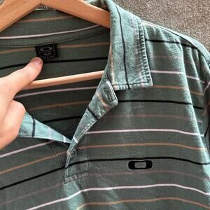 Oakley Men's Polo Shirt Striped Performance Regular Fit Green Size Medium