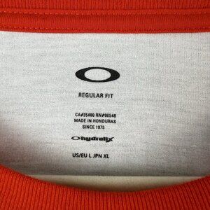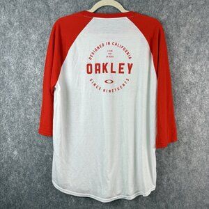 Oakley Men’s Raglan Baseball T-Shirt Size L Red Orange White 3/4 Sleeve Logo
