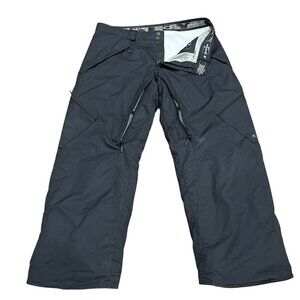 These insulated snowboard pants feature a zip snap fly, inside leg zip vents, slash zip front pockets, leg pockets, low back pockets with velcro closure, Excellent condition, no holes or frays. Black, size XXL