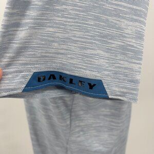 Oakley Mens XL Extra Large Short Sleeve Polo Shirt Blue Striped Polyester