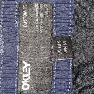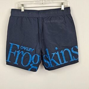Blue, Size small. Elasticized, drawstring waist with side pockets and one rear welt pocket. Measures 32" waist, length is 16"