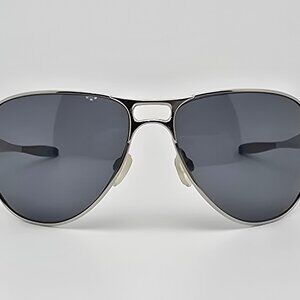 This listing is for authentic Oakley OO4043-04 Hinder Polished Chrome Frame Polarized Grey Lens Aviator Sunglasses 61-15-122. Sunglasses are in fair pre-owned condition, left nose pad needs replaced and both lenses have some scratches and delamination (see photos). Price is reflective of item condition. Size: 61-15-122. Please see pictures to make your complete condition assessment.