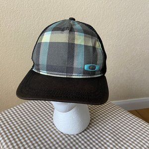 Oakley Plaid Mesh Back Trucker Hat Cap Adjustable Size Blue Gray Black In good preowned condition. From a smoke-free, pet free environment.