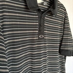 Oakley Polo Collar Striped Golf Black Gray Size L