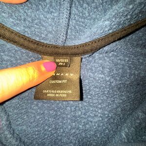 **please see closeup picture of the hole on front by the front kangaroo pocket where a corner of the pocket separated from sweatshirt causing the hole. Looks like an easy repair.