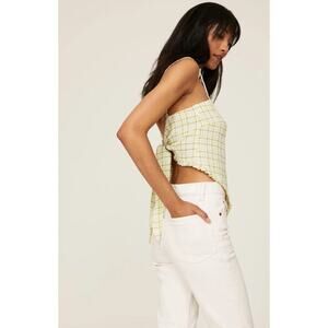 Pretty plaid patterns this scarf style Line + Dot that ties at the back and is a go to for hot days and nights.