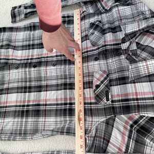 Get ready to hit the waves in this stylish Oakley button-up shirt for men. With a classic fit and a plaid pattern in white and black, this shirt is perfect for any occasion, from casual outings to workwear to parties. The long sleeves and collared neckline provide a comfortable and professional look, while the button closure adds a touch of sophistication. Made from machine-washable polyester flannel, this shirt is easy to care for and durable. The shirt is designed with accents that include buttons, and the collar style is pointed. The shirt is available in size small, with a chest size of 40 inches. This shirt is perfect for anyone who loves the surf, the beach, colorful designs, skate themes, and comfortable clothing.
