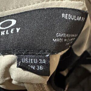 Logos/Branding: Oakley "O" logo at back waistband; OAKLEY wordmark above back pocket
