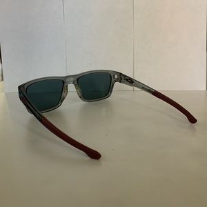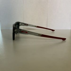 Selling my Oakley Splinter frames. Smoke grey with maroon accents and ear pads. Current lenses are prescription, polarized. Frame is in fair condition.