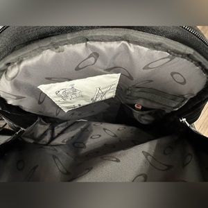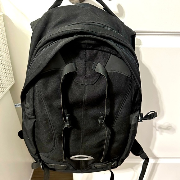 Oakley Sport Backpack preowned great condition. Exterior small pockets as pictured on strap and belt. Exterior straps to hold skis or a snowboard. Speakers at the bottom of bag (not tested).