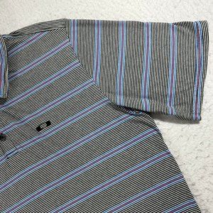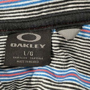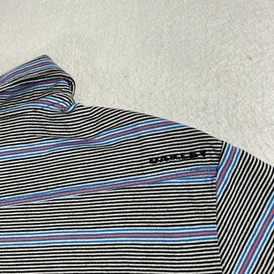 Oakley Sunglasses Men's Large Black White Blue Red Striped Short Sleeve Polo