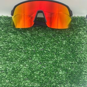 Bold Oakley sunglasses with vibrant orange lenses. Perfect for sports and outdoor activities.