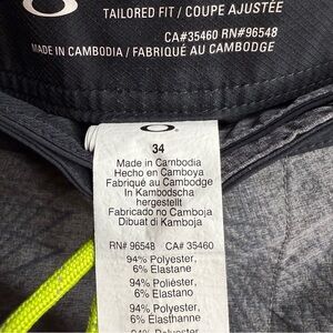 Oakley Tailored Fit Gray and Black Board Shorts with Neon Accents Size 34 GUC