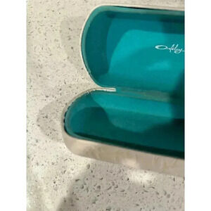 Oakley White Embossed Leatherette Hard Clamshell Protective Sunglasses Case has some marks on it see pictures for condition inside is a little dirty