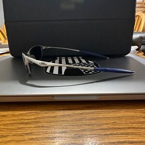The Oakley Wiretap 1.0 2002. Silver frame, blue iridium lens, these are prescription lens so the buyer would need to buy aftermarket lens. I am the original owner of these frames. I wore them from 2002 to 2024. Pristine condition. Always in the soft care and hard case when not wearing.