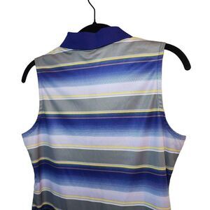 Oakley Womens Striped Tank Top Collared Active Sleeveless Shirt Blue Small