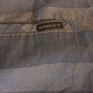 Oakley shirt men’s L blue gray striped short sleeve button front casual