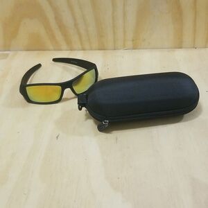 Stylish black sunglasses featuring yellow lenses. Brand new with black case.