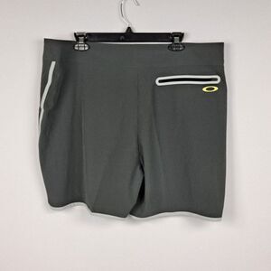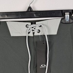 The color is shadow, deep green. Size 38. 18" Board Shorts with laced tie front and rear zipper pocket. Measures 39" waist, length is 18".