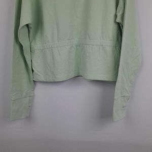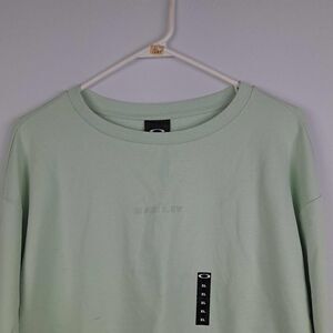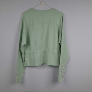 Pale green, called aqua foam, sizeXl. Round neckline, pullover with long sleeves and elasticized waist. 100% cotton, nice weight. Measures 23" pit to pit, length is 24". Retail $60.