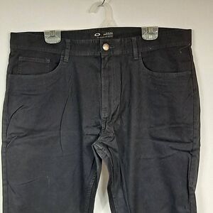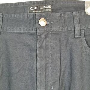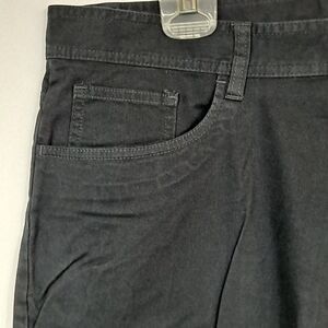 Black, size 40. Zipper fly front with pockets, back has patch pockets. Fabric is 98/cotton, 2/elastane. Measures 40" waist, 32" inseam.