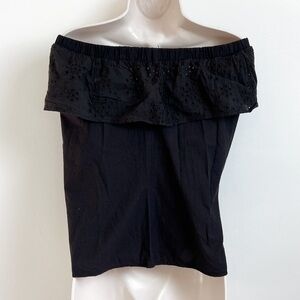Oakridge Off Shoulder Cotton Eyelet Ruffle Black Pullover Blouse Top Small