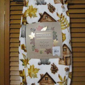 Oakville Road brand - New with tags blanket throw that is super soft and cozy. Tassel Fringe that is golden yellow. Cute pattern of gnomes, bird houses, leaves, etc. Pretty fall colors. Size is 50" x 70". Waiting to keep you warm & cozy.