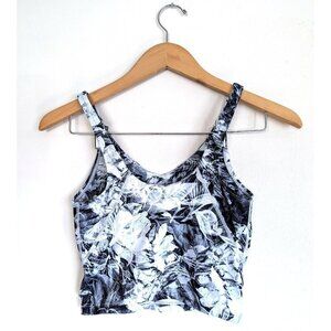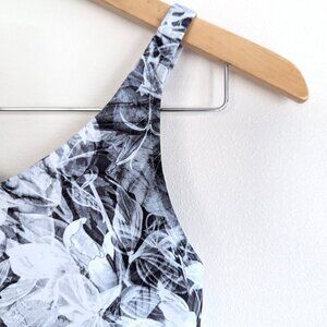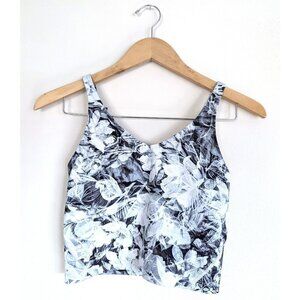 Oalks Floral Gray Sports Bra Crop Top V-Neck Workout Tank Yoga Clothing