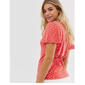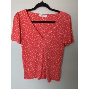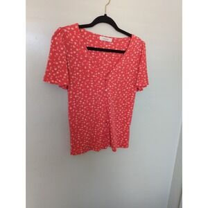 Oasis Asos Salmon Red Floral Button Down Blouse Size XS