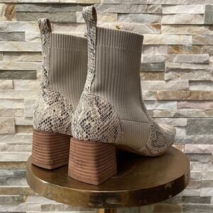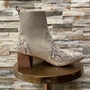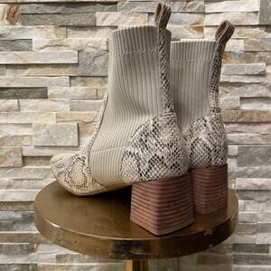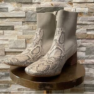 Oasis Society 10 Snakeskin Ankle Boots | Stretch Knit Panel, Block Heel, NWOT