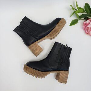 Oasis Society Aubrey Platform Chelsea Ankle Boots Women 10 Black Chunky Lug Sole