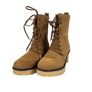 Oasis Society Dark Camel Faux Suede Lace-Up Platform Combat Boots Women Size 6.5