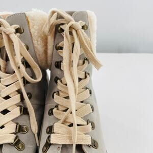 Oasis Society Gray Faux Suede Lace Up Chunky Heel Combat Military Boots 10