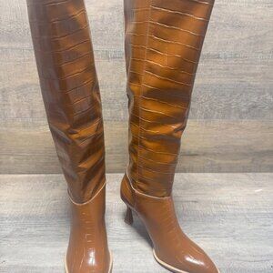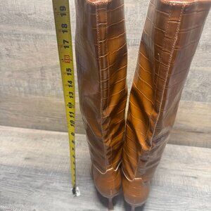 Oasis Society Vanessa Knee High Tan Snake Skin Boots Women's Size 8.5